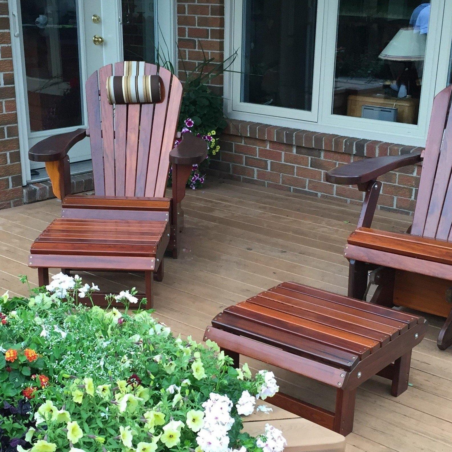 This handcrafted wood ottoman easily shifts between flat and angled positions—use it as a footrest, extra seat, or even a small table. Built for function and style, it ships partially assembled and pairs perfectly with any Muskoka chair.
