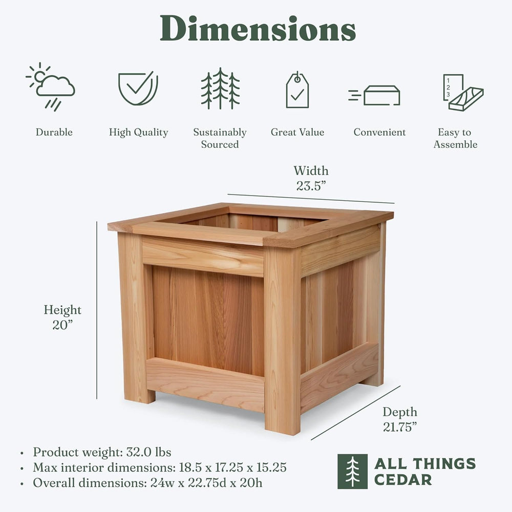 Introducing the All Things Cedar Premium Cedar Box Planter - the perfect blend of elegance, durability, and functionality for your outdoor gardening needs. Crafted from 100% natural Western Red Cedar, this box planter exudes timeless charm while offering unbeatable performance in any outdoor environment.